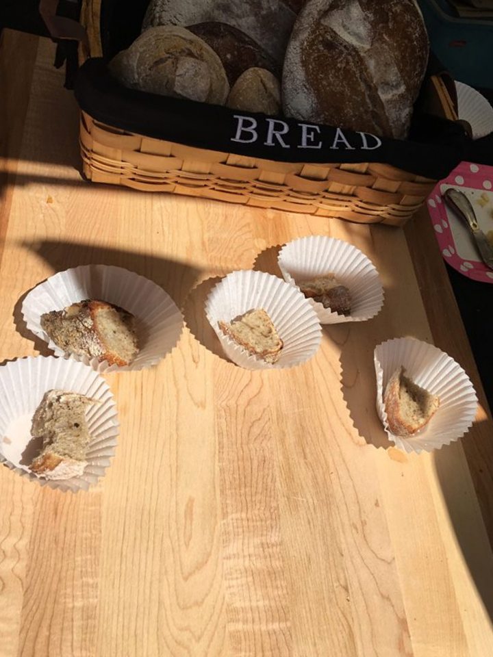 For each sample I saw being eaten, I saw a loaf being sold. I later found out that in the three hours that BreadBox was there, they sold all of their products! I can understand why. Once I tried a piece of the sourdough loaf that had been prepared, I wanted another slice instantly. It was delicious. I offered it to my almost two year old, and he enjoyed it enough to have another bite! I left with two Regular Loaves and a box of Four Mini Rolls.