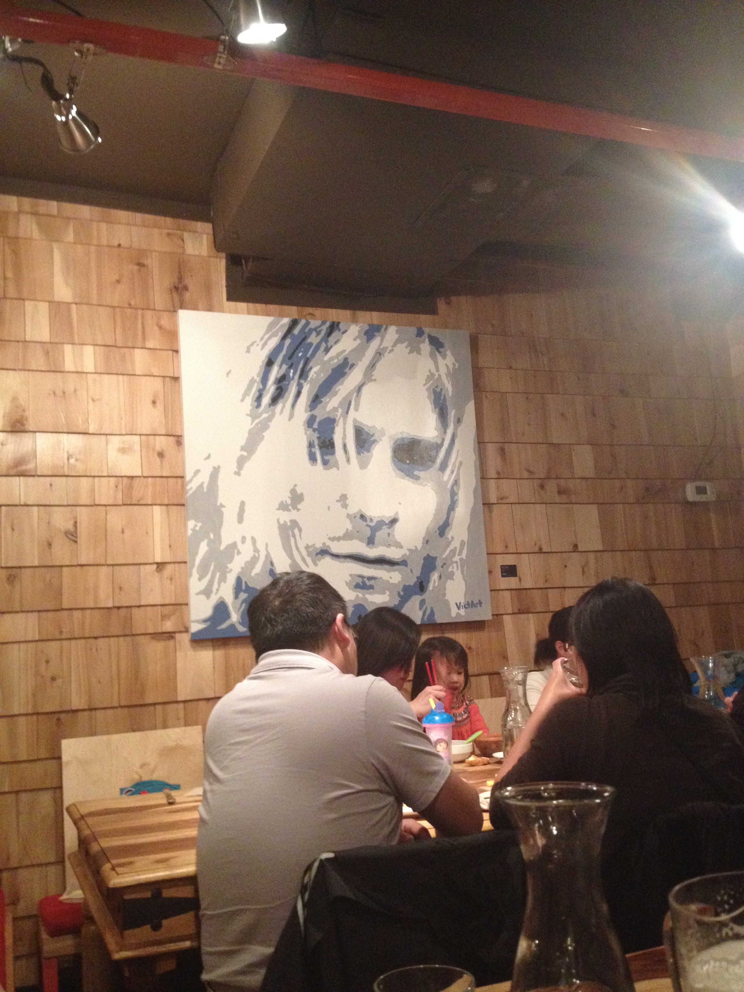 As soon as you enter, you almost get a bohemian vibe. Hanging on the walls are canvases with art of Kurt Cobain, Jimi Hendrix and Paul McCartney done by VictArt. They’re amazing and unforgettable. I encourage you to view his official website here or like him on Facebook here.