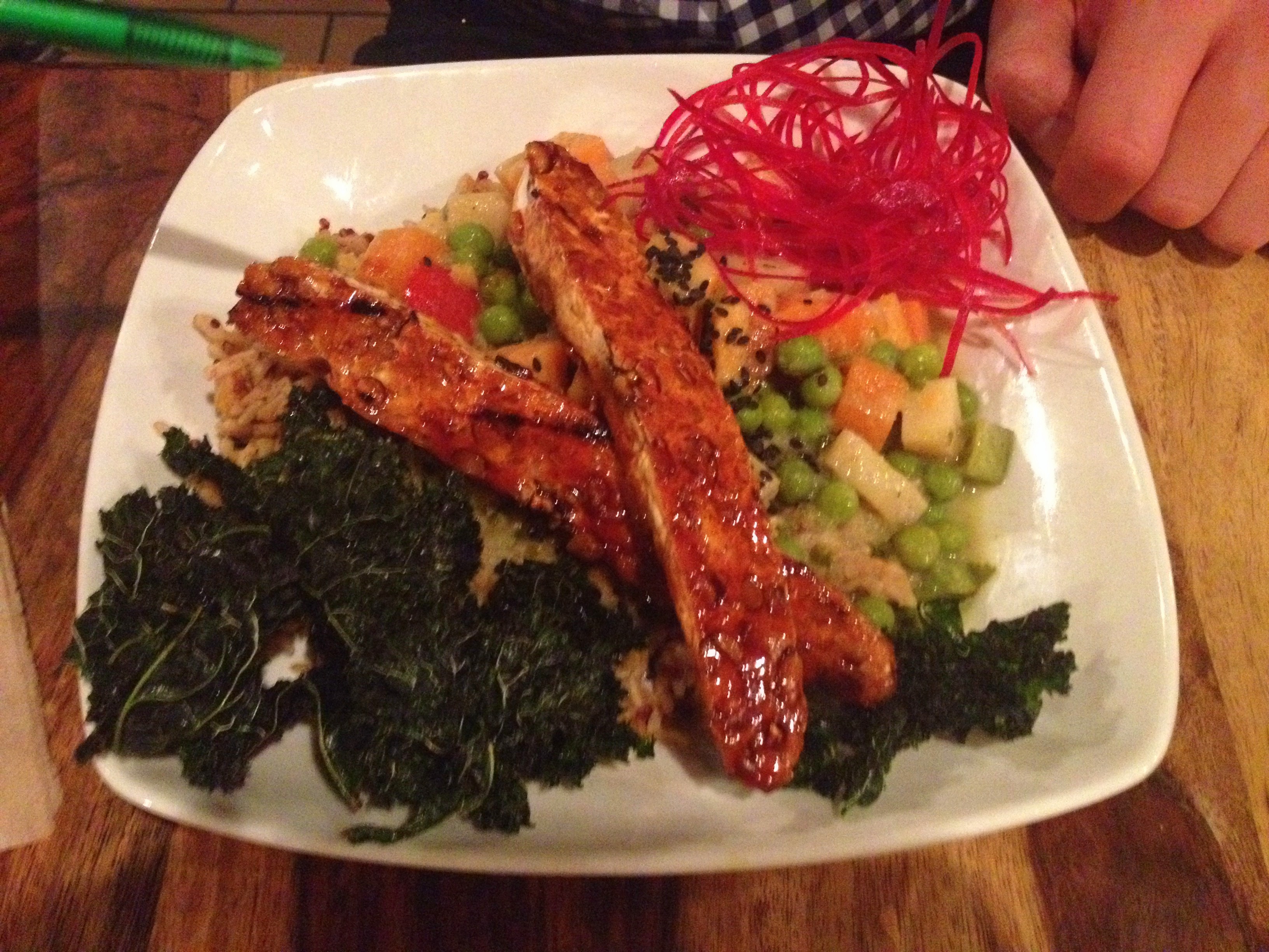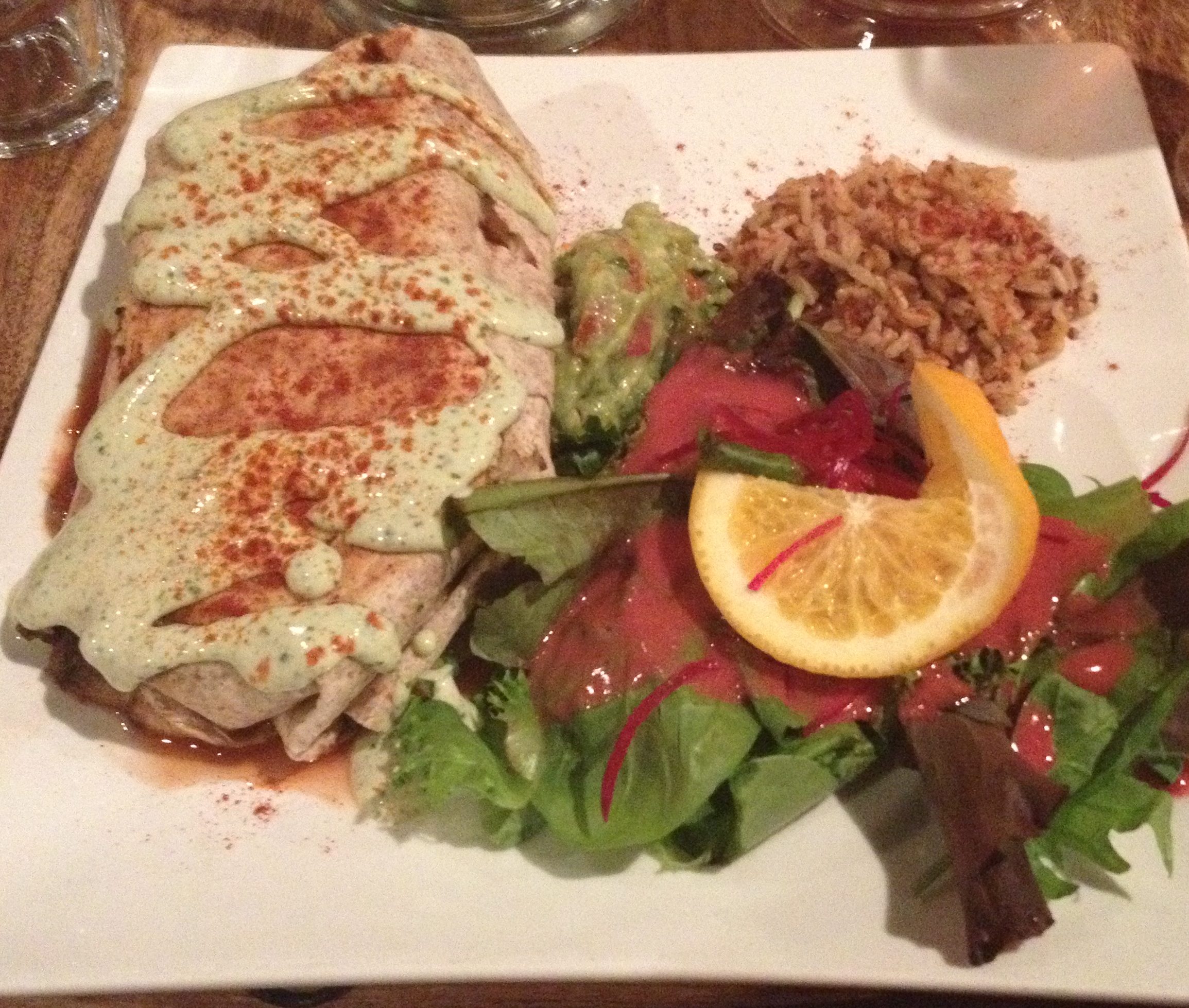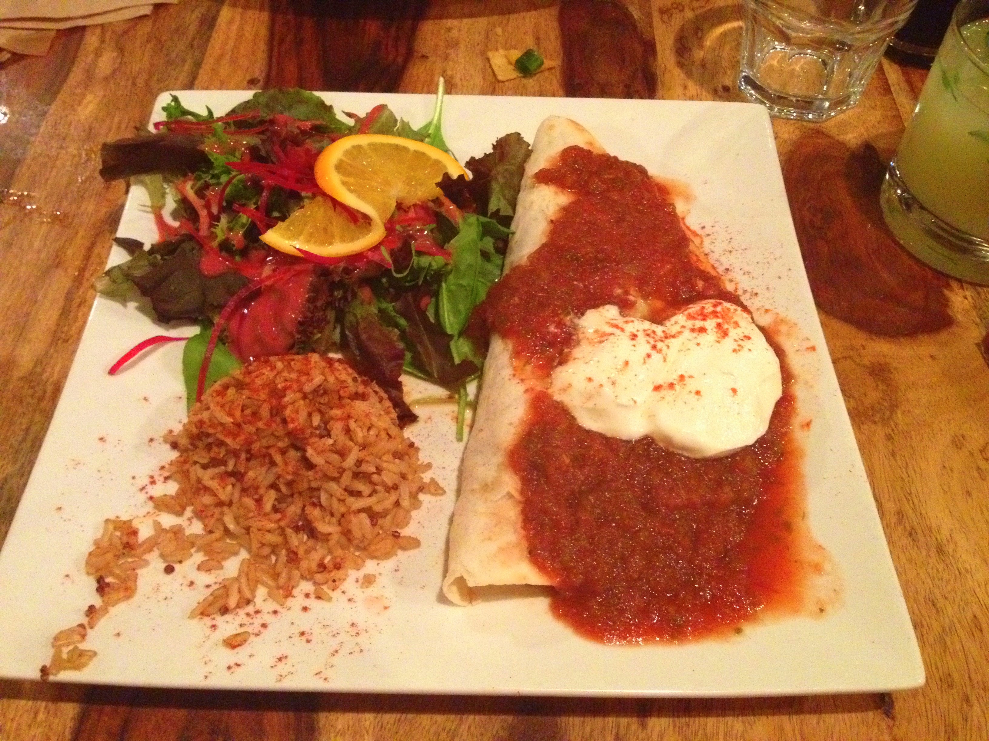 We ordered the Quesadilla with mixed salad and brown basmati rice, the burrito with mixed salad and rice, and the Green Curry and House Tempeh. Every dish was better than the last. Since the friends I went with do not usually go to vegetarian places, it was a new experience and they still really enjoyed it. Due to the portions being the sizes they were, it was hard for us to finish our plates. We even felt bad for leaving a few bites our plates- everything tasted so good.